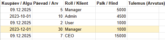 Ja suurendab palka, kui roll = “Juht”.