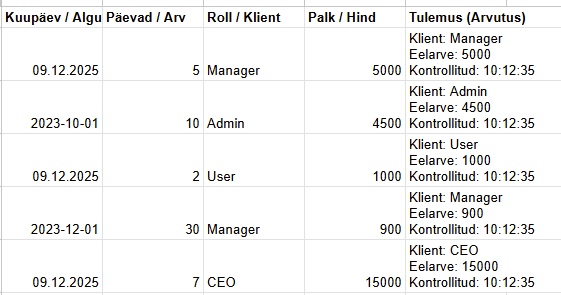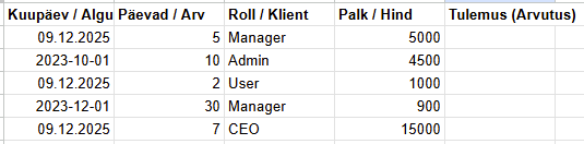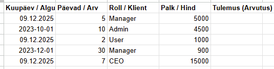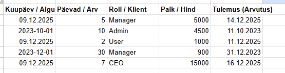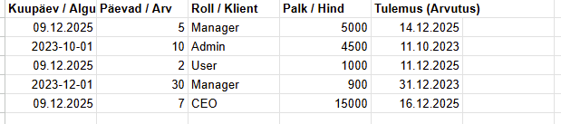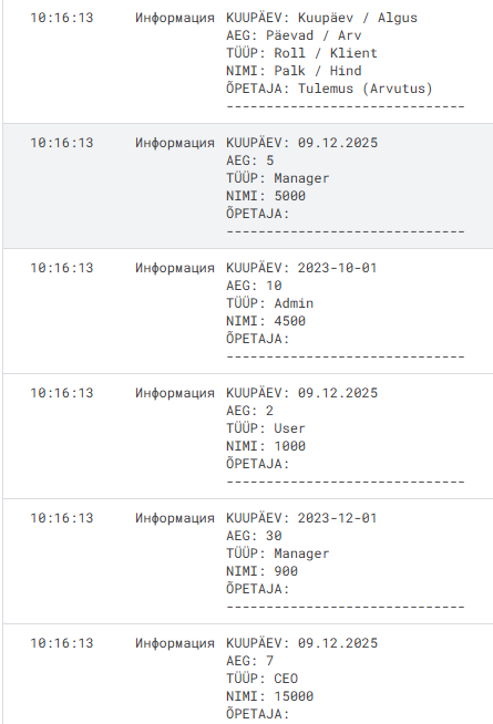 [“01.02.2025”, “10:00”, “Praktikum”, “Füüsika”, “Jüri”],