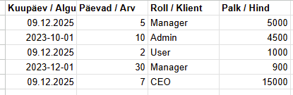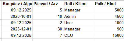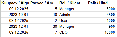 - Andmete lugemine tabelist
