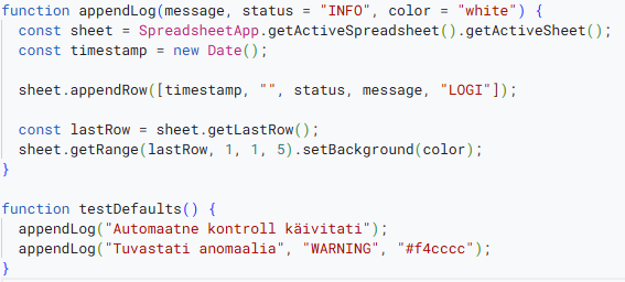 5. Funktsioon appendLog():