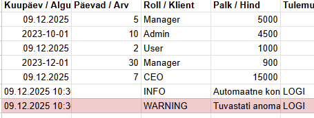 Funktsioon lisab tabeli lõppu logi.