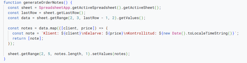 3. Funktsioon generateOrderNotes: