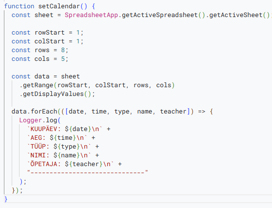 data.forEach(([kuupäev, kellaaeg, tüüp, nimi, õpetaja]) => {